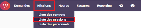 Pour cela, vous devez vous rendre dans le module "Missions", puis dans l’onglet "Liste des missions" :