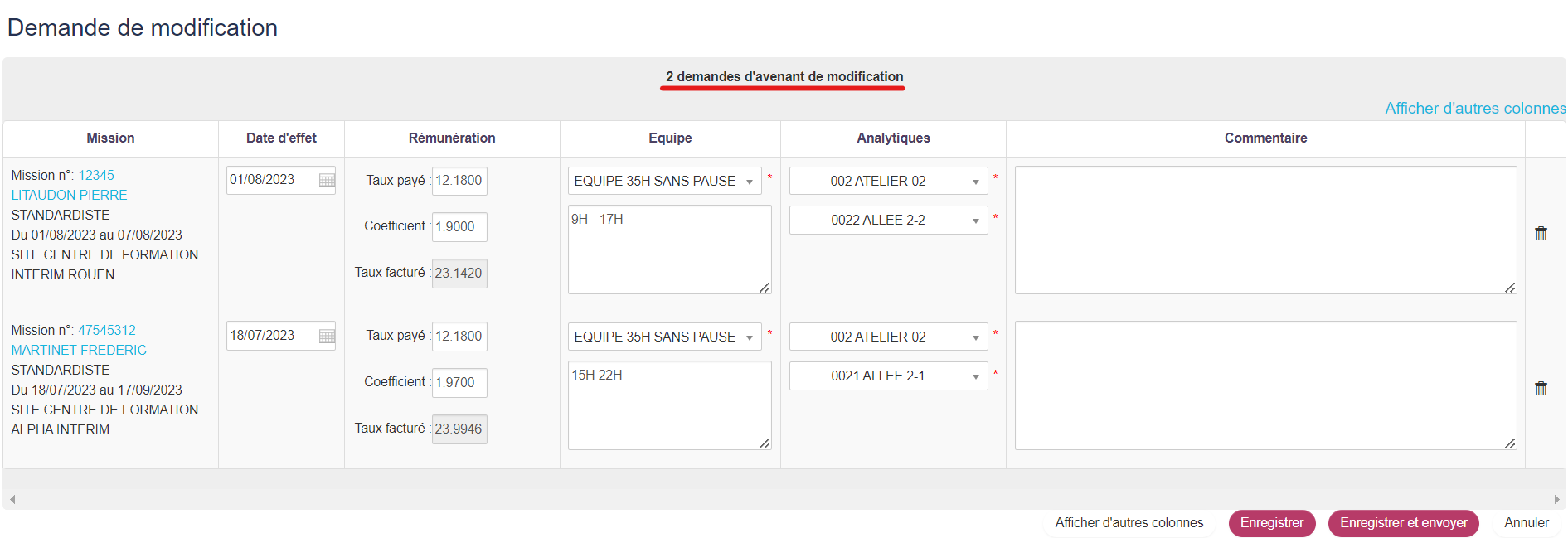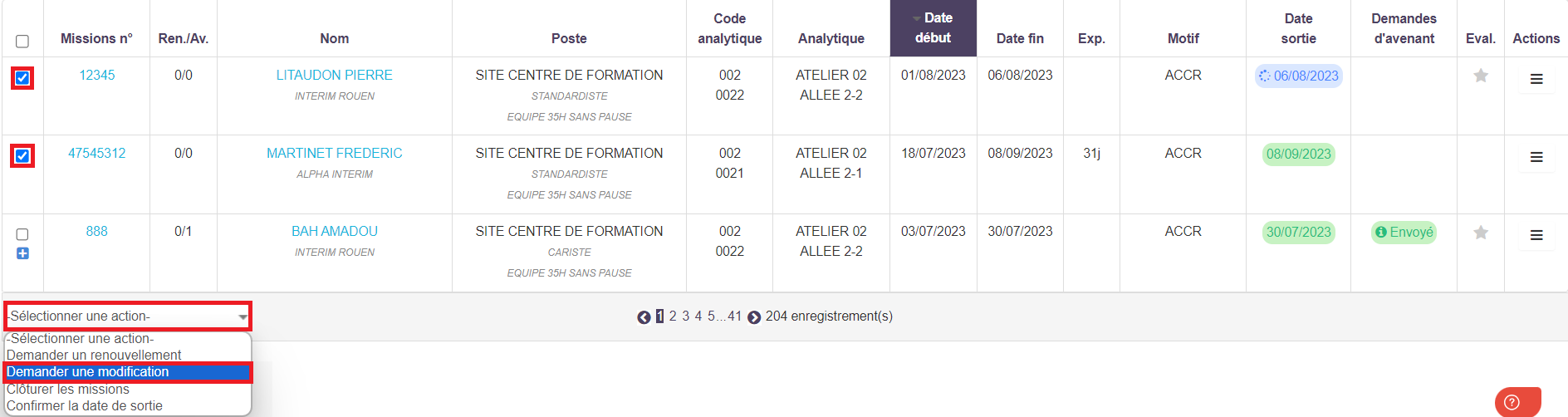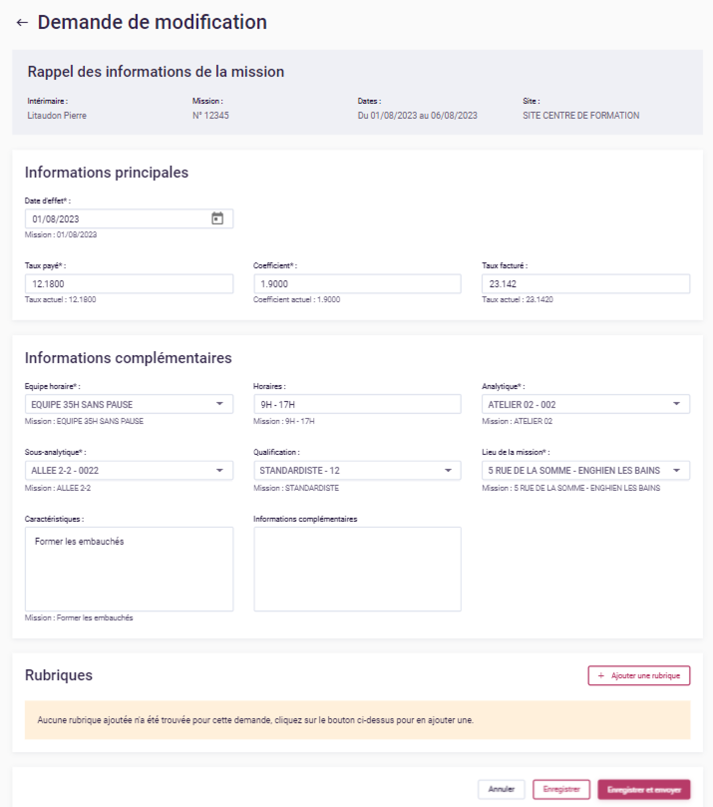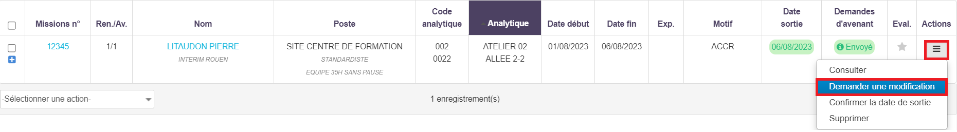 Pour effectuer une demande de modification pour un intérimaire, vous pouvez utiliser la fonctionnalité "Demander une modification".