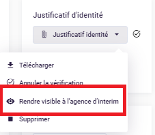 A noter que lorsqu'un document est présent sur la fiche Personnels, il est possible de le rendre visible de façon rétroactive à l'agence, même en cas d'oubli lors de l'ajout (vous cliquez sur le nom du document) :