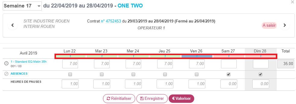 Pour cela, vous devez cliquer sur le code du pointage inscrit en-dessous de chaque journée.