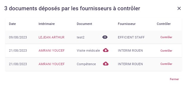 Cliquez sur le nom de l'intérimaire, vous pourrez visualiser les documents concernés.