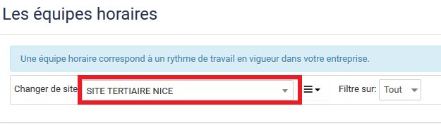 Se déploie alors un menu déroulant vous permettant de sélectionner les équipes types actives sur le site :