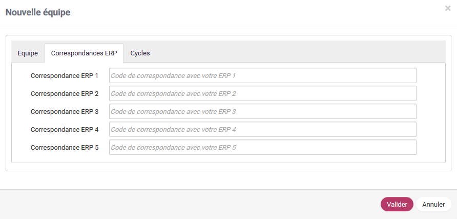 Ce paramétrage correspond au code de l'équipe type dans l'interface heures du client.