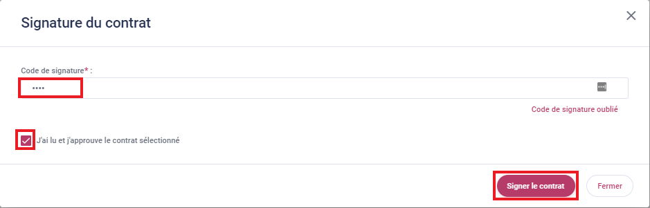 - Renseignez votre code de signature
